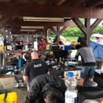Die Mittagspause wurde zur Stärkung genutzt und wer im Regen gefahren war, der brachte sein Fahrzeug wieder in Ordnung für die Trockenläufe. Zum Mittag gab es prima Kesselgulasch, Steaks und Bratwurst. Wegen des Wetters wurde auf den Start des Truck-Race mit den „Lkw s“ verzichtet.