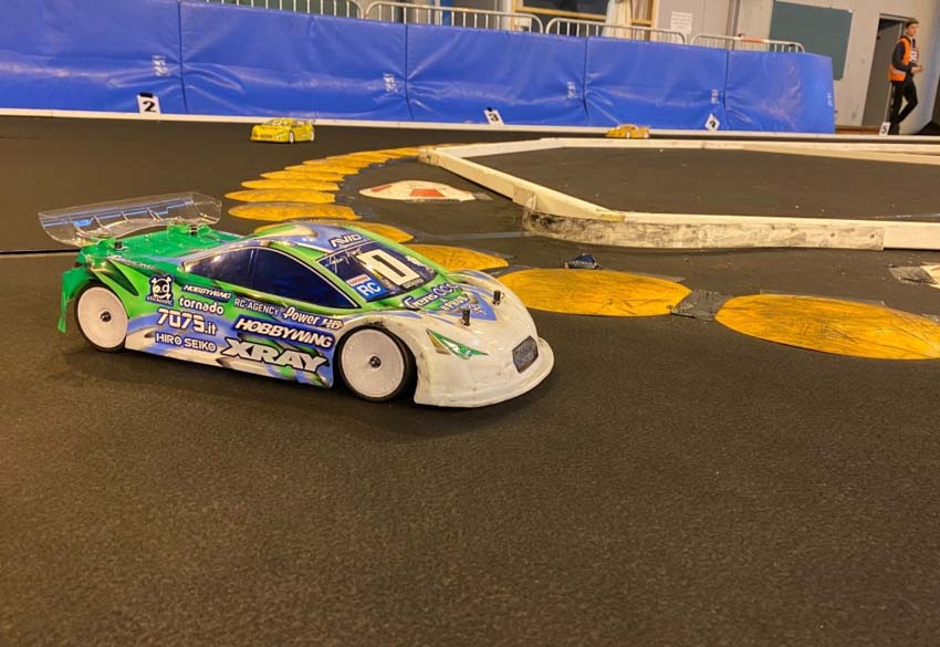 As always we ran both modified and stock with the Xray T4 20 with aluminium flex chassis. We started our first session with the cars setup like the last final in Daun. The higher roll centers and small rear toe in (2 degrees) made the car a bit too difficult to drive on the low grip track. By the 4th round we decided to lower the roll centers and increase the rear toe in to 2.5 degrees, which made the car easier to drive and faster. By the 6th session I was still in the lead, but the car remained a bit tricky to drive. We left before the last session, and I was in P4 in stock when the day ended.
