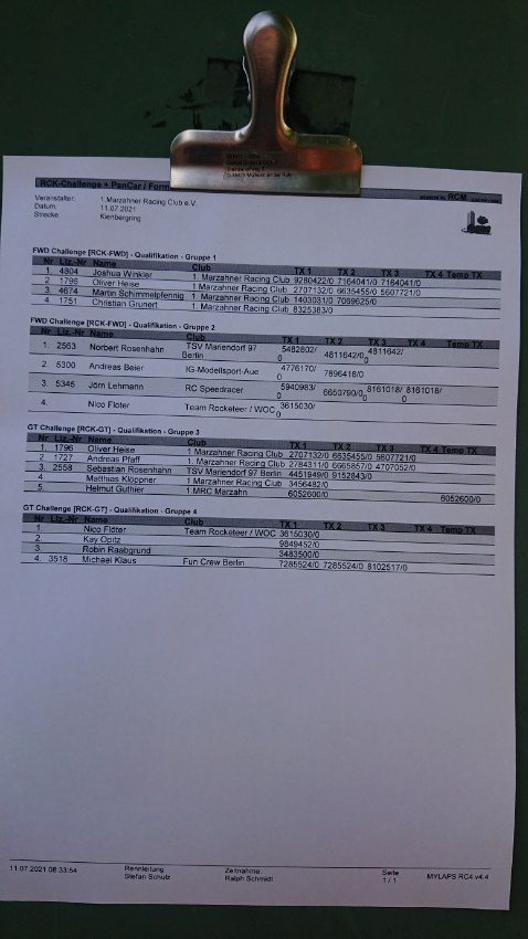 Bei bestem Wetter ging es am Morgen mit dem freien Training los. Erste Runden wurden gedreht und am Setup geschraubt. Danach stand der erste von drei Vorläufen auf dem Programm. Mitverfolgen könnt ihr das Rennen bei MYRCM.