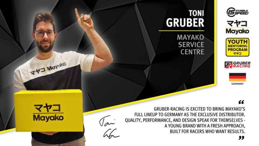 “Gruber Racing is excited to bring Mayako’s full lineup to Germany as the exclusive distributor. Quality, performance, and design speak for themselves – a young brand with a fresh approach, built for racers who want results.”