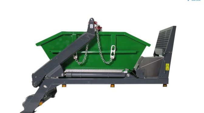 Der Aufbau kann auf 2-Achs-LKW montiert werden. Die gesamte Hydraulik ist auf der Plattform montiert. Über den Haken kann der Container auch ausgekippt werden. Eine hydraulische Abstützung verhinder das Kippen nach hinten.