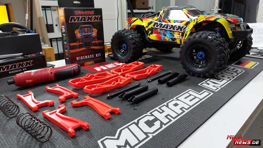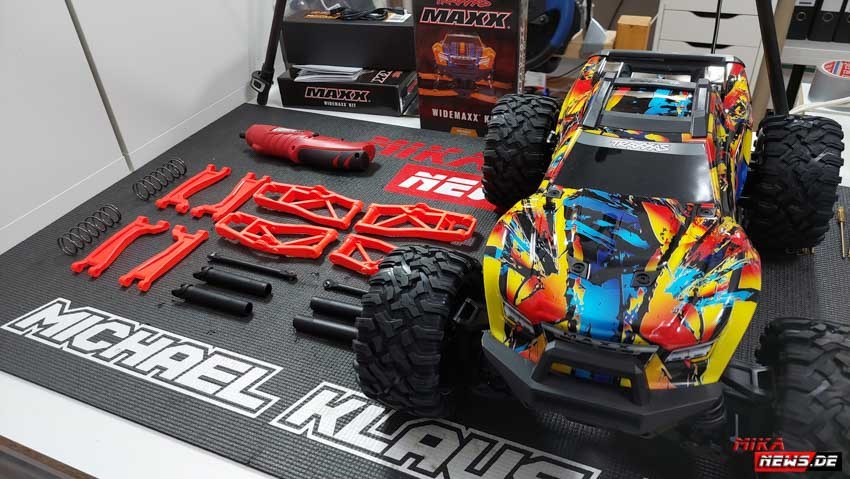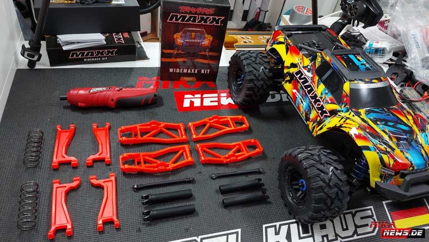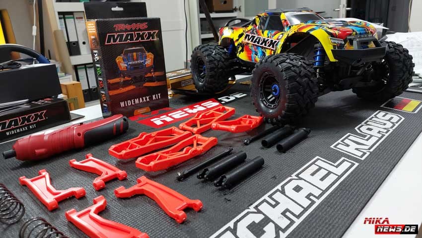 Wer noch einen Traxxas Maxx hat, kann diesen auf den Wide Maxx umbauen. Damit habt ihr eine breitere Spurbreite, was das Fahrzeug ruhiger beim fahren macht. Es kippt auch nicht mehr so schnell in der Kurve. Die Umbaukits gab es in verschiedenen Farbvarianten.