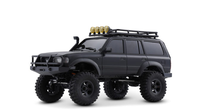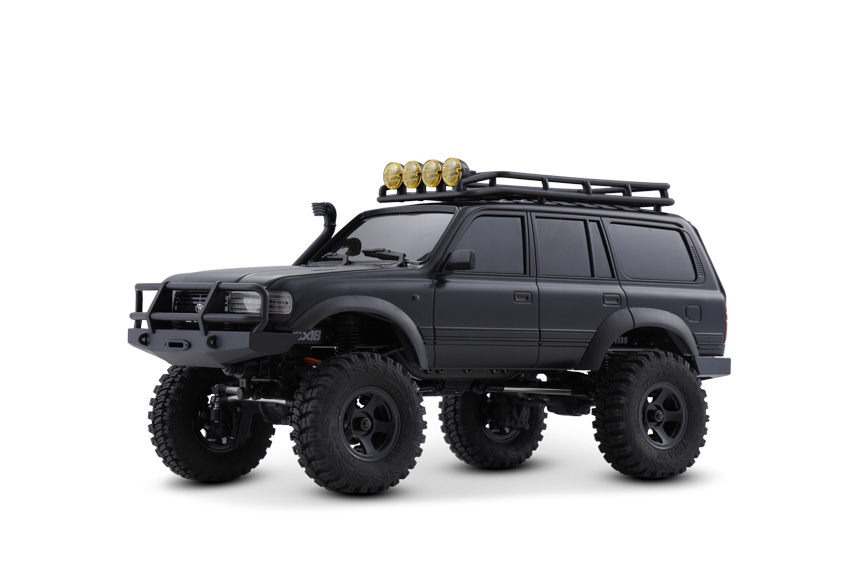 Der FCX18 Toyota LC80 ist ein offiziell lizensierter Crawler im Maßstab 1:18. Der Scaler kommt inklusive 2-Gang-Getrieb, eingebauter Elektronik, integrierter Beleuchtung, Fernsteuerung und Akku fahrfertig aus der Box.