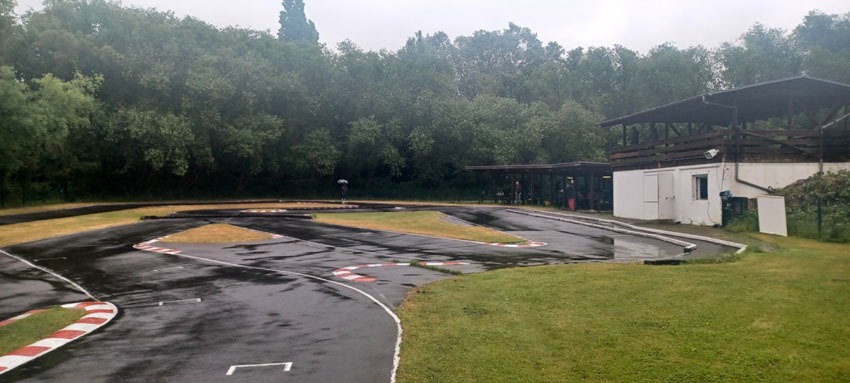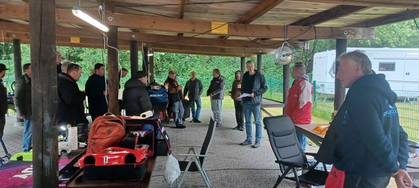 Am Sonntag war der Sonnenschein dann nicht mehr zu sehen, eine Regennasse Strecke erwartete die hartgesottenen Fahrer, die zweite Fahrerbesprechung fand überdacht im Fahrerlager statt.
