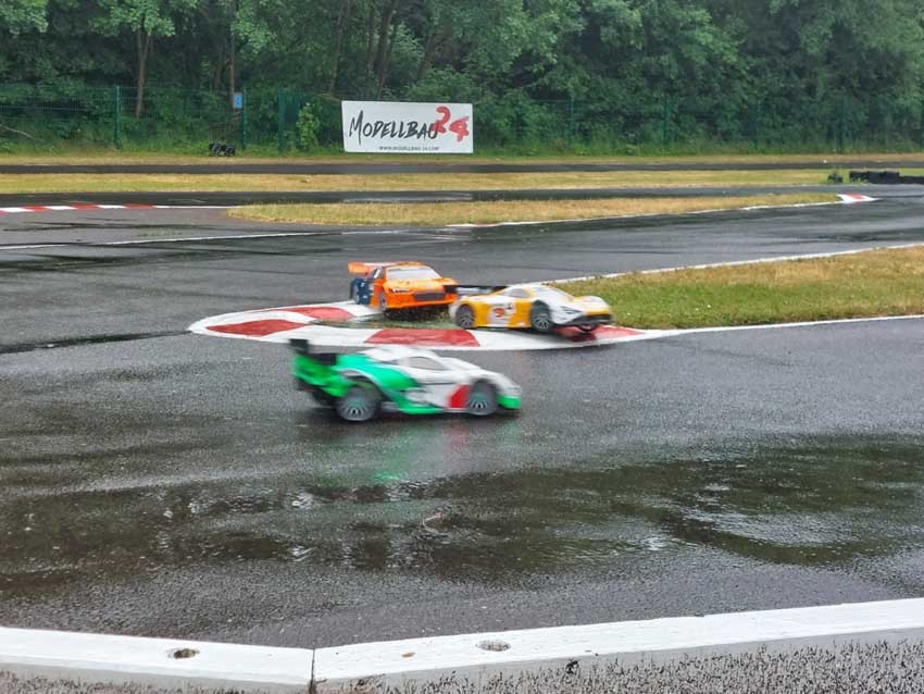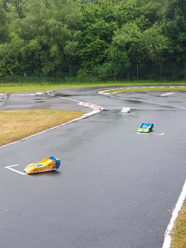 Überhaupt nicht schocken von der rutschigen Fahrbahn ließen sich Fabian und Gaylord. Durchweg sauber zogen sie ihre Runden, dahinter gingen Jens und Mathias ins Ziel.