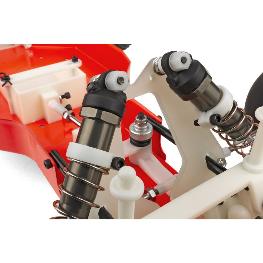 Der Team Associated RC10T Cliff Lett Edition ist eine originalgetreue Hommage an den Stadium-Truck-Prototypen, der 1991 die Florida Winter Champs dominierte. Auf einem neonrot pulverbeschichteten 6061-T6-Aluminium-Wannenchassis vereint der Bausatz den klassischen Look mit modernster Renntechnik. Das 3-Gang-Stealth A.T.C.-Getriebe mit kugelgelagertem Differenzial, eine Carbon-Getriebestrebe und RCPS-Style-Titan-Spurstangen sorgen für sanfte Kraftübertragung und präzises Setup. Lange Querlenker, hart eloxierte Stoßdämpfer und die unabhängige Vier-Rad-Aufhängung bieten großzügigen Federweg für heutige Off-Road-Strecken. Schmale Rillenreifen vorne, breite Mini-Pins hinten und der originale Team-Moo-Dekorbogen lassen Sammler und Racer ein Stück RC-Geschichte neu erleben.