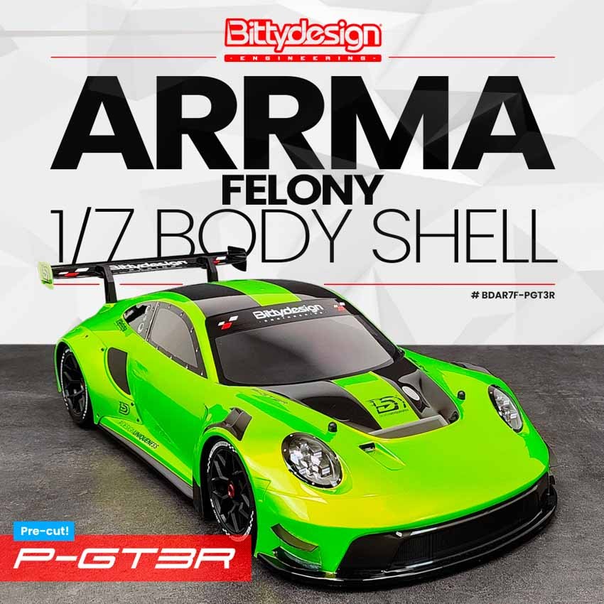 Es gibt von Bittydesign eine neue Karosserie für den ARRMA Felony, welche auf andere Chassis mit den selben Abmaßen passt. Es handelt sich um die P-GT3R im Maßstab 1/7. Diese kommt unlackiert.