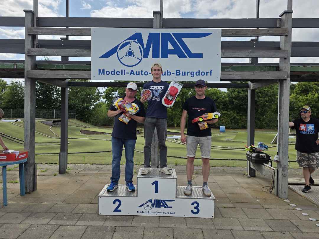 Auf der tollen RC Car Modellsportanlage des MAC Burgdorf kam es am letzten Wochenende zum Aufeinandertreffen der Fahrer für den Qualifikationslauf zum Tamiya Euro-Cup 2024/25. Dieses Rennen fand gut einem Monat vor dem diesjährigen Deutschlandfinale statt. Dies war eine weitere Möglichkeit nochmal Rennatmosphäre zu schnuppern und ein tolles Rennen zu erleben. Die Strecke und die Anlage des MAC Burgdorf ist immer eine Reise wert. Die Strecke istsehr abwechslungsreich mit den unterschiedlichen Kurvenpassagen, die man richtige gut durchfahren muss, um auf schnelle Zeiten zu kommen. Dann bietet der Verein ein leckeres Catering und wer vor Ort bleibt, kann auch die Dusche nutzen. Das ist einfach perfekt für ein schönes Wochenende mit anderen RC Car Fahrern. Natürlich wurde auf der Strecke nicht nur um die goldene Ananas gefahren. Dafür reisten viele bereits am Samstag zum trainieren an, um sich im Kampf um den Sieg ein gutes Setup zu erarbeiten. Vielen Dank an Klaus und Barbara Hein für die Bilder und das Video mit Eindürcken vom Event: