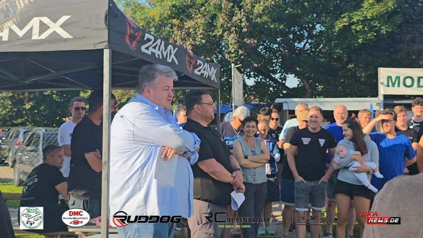 Mit dem Sieg ließ im zweiten Finale ließ Lukas Ellerbrock den Kampf um den Titel offen. Vor dem letzten Finale lagen die Karten bei Lukas Ellerbrock, der vom Start weg am Heck von dem Fahrzeug von Jan Ratheisky hin. Mit einem super Überholmanöver schob er sich in Führung. Diesmal war es Enrico Jung, der ihm folgte. Jan Ratheisky verlor mit den nachlassenden Reifen den Anschluss, aber dann machte Lukas Ellerbrock einen Fehler und das Fahrzeug rollte übers Dach. Damit waren nicht nur Enrico Jung und Jan Ratheisky an ihm vorbei. Alexander Stocker und David Reip konnten diesen Fehler nutzen und sich in dem Lauf wertvolle Punkte für eine bessere Platzierung in der Gesamtwertung holen. An der Spitze siegt Enrico Jung vor einem überglücklichen Jan Ratheisky, der nach dem turbulenten Finale doch noch deutscher Meister 2025 wurde. Dramatischer kann ein Finale fast nicht ausgehen. Zuvor hatten David Ehrbar (F1), Kevin Schmid (EGTWHO) und Ronald Völker vorzeitig ihre DM-Titel nach 2 Läufen eingefahren. In der Klasse FWD machte es Alexander Stocker unbewusst spannend. Im ersten Finale blieb er an seinem Startplatz wie bereits erwähnt wegen eines defekten Hauptzahnrades stehen und musste alle vorbeilassen. Die Gunst der Stunde nutzte der Vorjahressieger Roman Borschel zu einem Start-Ziel-Sieg vor Daniel Pöhlmann, der sich rundenlang gegen die Angriffe von Stefan Schulz verteidigen konnte. Im zweiten Finale lief es für Alexander Stocker besser. Er setzte sich vom Fahrerfeld ab und fast wäre ihm ein Fehler zum Verhängnis geworden. Jedoch war der Helfer schnell genug. Er siegt sicher vor Roman Borschel und Daniel Pöhlmann. Damit war die Titelentscheidung vertagt in Lauf 3. Hier wieder das gleiche Bild wie aus Lauf 2. Alexander Stocker fuhr vorne weg, bis ihm genau an derselben Stelle wieder ein Fehler passierte. Diesmal war Roman Borschel näher dran und versuchte in den letzten Runden noch in Führung zu gehen. Im Ziel trennten die beiden nur 0,3 Sekunden. Herzlichen Glückwunsch an Alexander Stocker zum Titelgewinn. In der Modified-Klasse stand der Sieger mit Ronald Völker nach zwei Finalen fest. Damit stand Christopher Krapp in der „Pole Position“, welche er vom Start weg ausnutzen konnte. Dann passierte ihm ein Fehler und er viel weit zurück. Nun in Führung war Dominic Greiner, der auf Kurs war, Vizemeister zu werden. Doch auch er blieb nicht fehlerfrei und fand sich im Positionskampf um Platz 4 mit Christopher Krapp und anderen Fahrern wieder. Dies war die Chance für Simon Lauter. Simon Lauter machte es besser. Bis ins Ziel konnte er diese Führung verteidigen und sich die Vizemeisterschaft holen. Was für ein Lauf. Dominic Greiner folgte ihm auf dem Podium vor Christopher Krapp und Dominik Schmid.