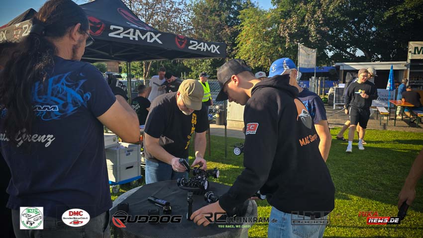 Nachdem am gestrigen Tag trainiert wurde, reisten am Morgen auch die Teilnehmer an, die am Vortag zeitlich nicht konnten. Bevor die Seedings gestartet wurden, gab es die Fahrerbesprechung durch den Veranstalter und Rennleiter, die ihr Team für das Rennen vorstellten. Wichtig war, dass alle Fahrzeuge markiert sein musste, jeder die richtigen markierten Räder auf dem Fahrzeug hatten und die richtige Handout Combo speziell in FWD und Hobby eingebaut ist. Diese wurden vor Ort bereitgestellt.