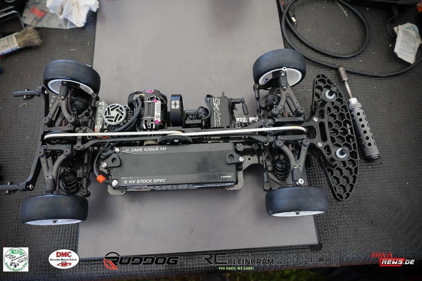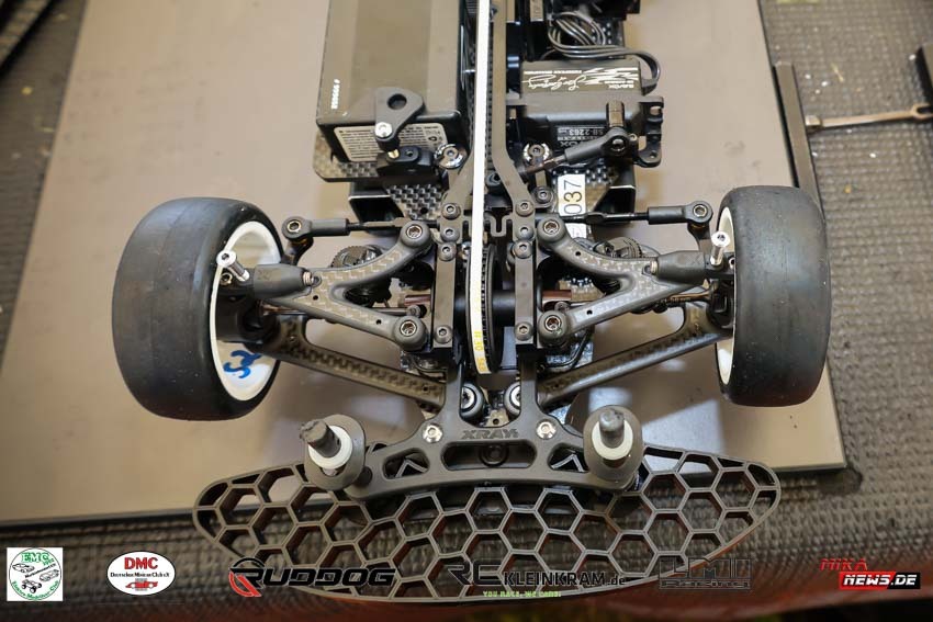 Hier der Blick auf sein Fahrzeug. Übrigens gibt es bei Xray eine Seite, wo alle Setups einzusehen sind. Hier der Link: –Xray Setup-Seite–
