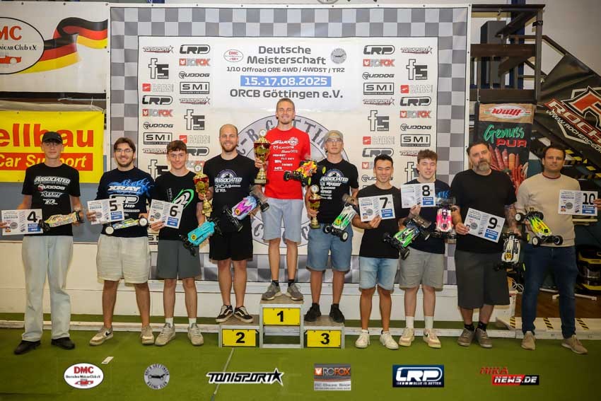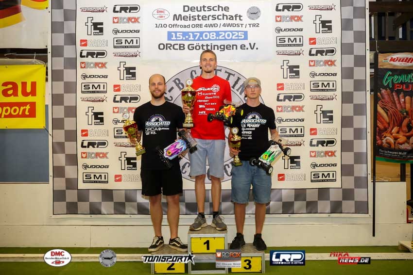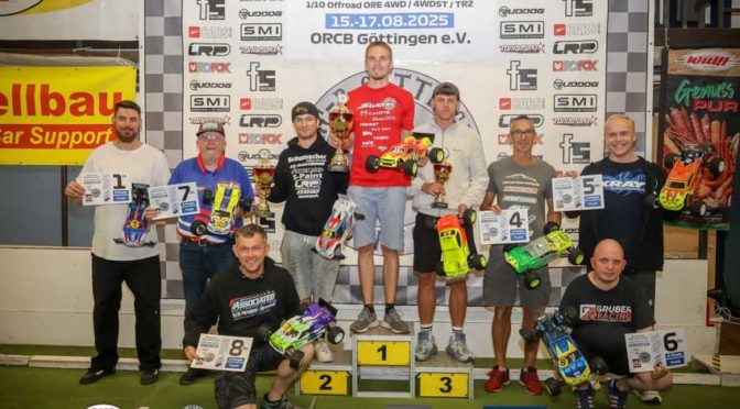 Nach drei Tagen und einem furiosem letzten Finallauf in der Klasse ORE4WD ging die diesjährige deutsche Meisterschaft ORE4WD, ORE4WDST und TR2 zu Ende. Danke für an die vielen helfenden Hände vom ORC-B Göttingen, welche dieses Event überhaupt erst möglich gemacht hatten. Ihr wart ein super Team, angefangen von der Organisation, Durchführung bis zum, Catering. Danke an Hartmut Wenzel für die perfekte Zeitnahme, dann an den Moderator Tobias Schuster für das kommentieren der Läufe, den Schiedrichter Silvio Röse, Steffen Kunz (DMC Referent) und die am Event beteiligt waren.