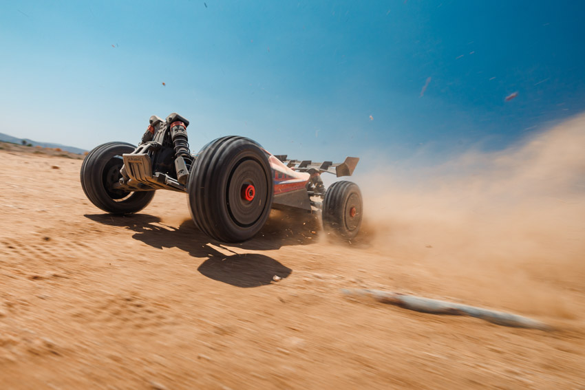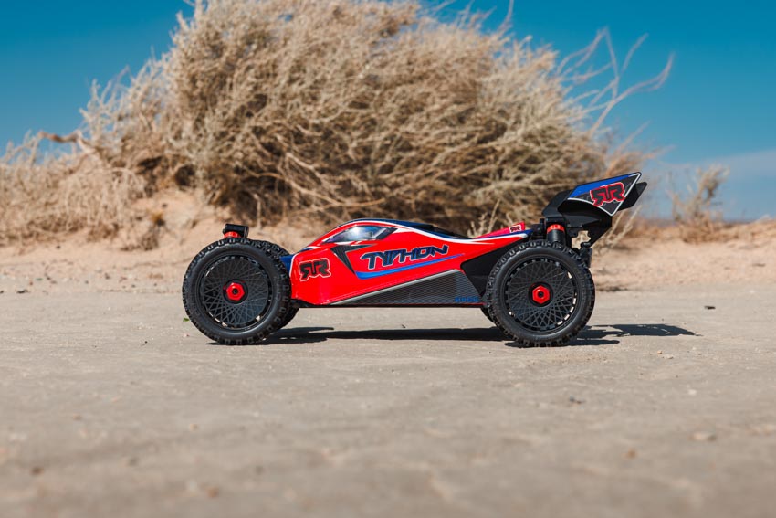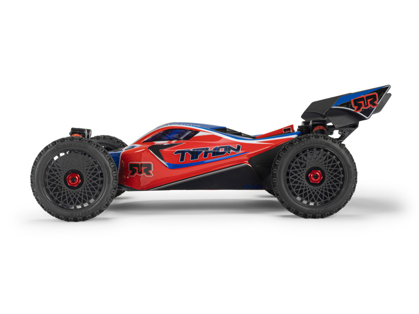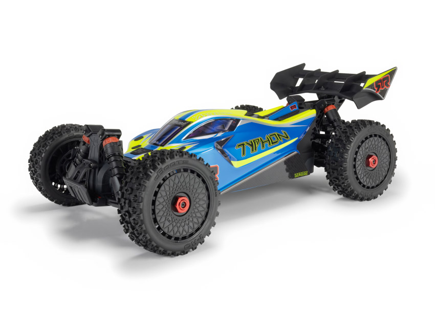 Geh aufs Ganze und erlebe die Power eines Brushless-Antriebs mit dem ARRMA TYPHON 223S BLX Race Buggy im Maßstab 1/8! Bereits ab Werk für 2S- oder 3S-Akkus ausgelegt, kannst du die öchstgeschwindigkeit von 55 km/h auf über 80 km/h steigern –ohne ein