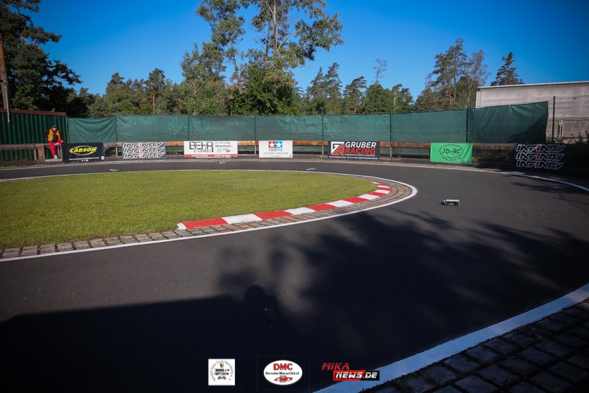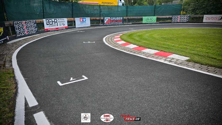 Die Strecke machte einen schönen Eindruck und hat die ein und andere tückische Stelle, wie zum Beispiel die schnelle Links-/Rechspassage nach dem Fahrerstand. Diese sollte man innen anfahren, da außen eine kleine „Welle“ ist. Weiterhin folgen enge und auch schnelle Abschnitte, wie Kurven mit flachen Curbs, welche rot/weiß gestrichen sind. Haben die Fahrer eine Runde beendet, sind ca. 235 Meter mit den Fahrzeugen zurückgelegt wurden. Der Fahrerstand bietet viel Platz für die Fahrer und den Schiedsrichter bzw. Rennleiter. Davon haben alle eine gute Sicht auf die Strecke, um einmal die Fahrzeuge präzise um den Kurs zu steuern und den Rennverlauf mitzuverfolgen.