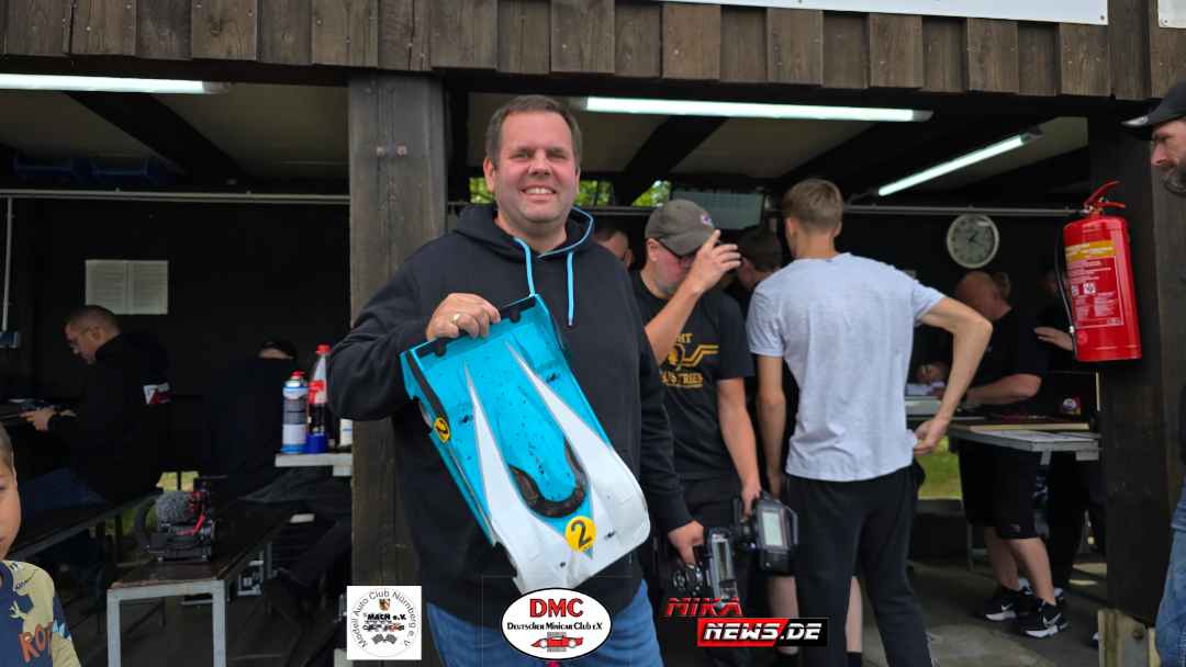 Der erste Tag ging nach insgesamt 8 Trainingsläufen bei trockenem Wetter zu Ende . Vorher waren die Wetteraussichten viel schlechter ausgefallen. Ab dem 4 – 5 Vorlauf konnte man anhand der Rundenzeiten kaum noch Zeitverbesserungen sehen, aber dafür wurde die Fehlerquote verbessert. Es gab immer weniger Abflüge zu sehen. Einige Zuschauer waren noch vor Ort und konnten sehen, wie schnell gerade die Fahrzeuge der offenen Klassen um den Kurs rasten. Da war Präzision gefragt, um nicht an einem der Curbs abzufliegen. Am Ende des Tages waren Thomas Stenger (EGPRO10SP), Mathias Reber (EGPRO10) und Thomas Sonne (EG8e) die schnellsten Fahrer gewesen. Dabei waren die ersten Fahrer in ihren Klassen nicht weit von den Rundenzeiten auseinander. Samstag, den 05.09.2025 geht es 8:30 Uhr mit der Fahrerbesprechung weiter. Im Anschluss gibt es einen Trainingslauf und die beiden gezeiteten Training, bevor die vier von fünf Vorläufen gestartet werden.