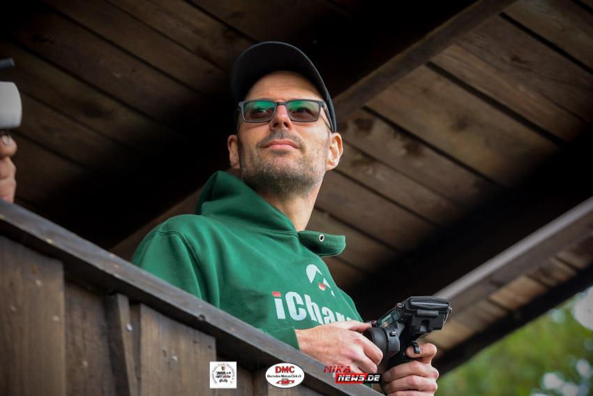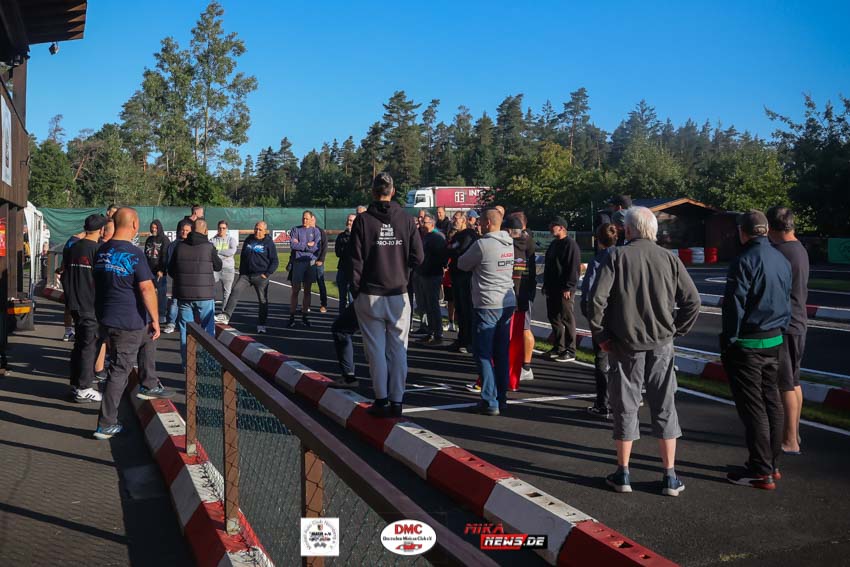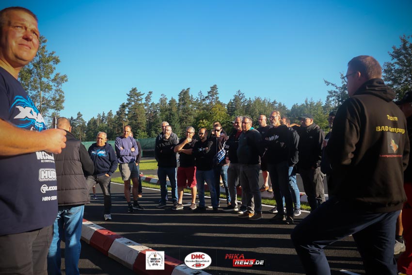 Schon vor 8 Uhr fpllte sich langsam das Fahrerlager für den zweiten Tag der offenen DM. Diesmal waren alle Teilnehmer vor Ort angereits, um gleich den ersten Trainingsdurchgang vor den Seedings mitzufahren. Zuvor lud Jan Dietmar bei bestem Wetter mit Sonnenschein zur Fahrerbesprechung ein. Dabei stellte er das Veranstaltungsteam vor und informierte über den Rennablauf. Heute wird es 4 Vorläufe geben. Insgesamt stehen 5 auf dem Programm, wovon 2 für die Gesamtwertung gewertet werden.