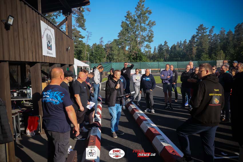 Bei besten Wetter konnte Jan Dietmar zur Fahrerbesprechung die Teilnehmer vor dem Fahrerstand begrüßen. Jan informierte die Teilnehmer über den Rennablauf. Ganz wichtig war, dass von den fünf Vorläufen zwei in die Wertung für das Vorlaufergebnis eingehen werden und die Finalläufe mit jeweils 10 Fahrern im A-Finale gestartet werden.