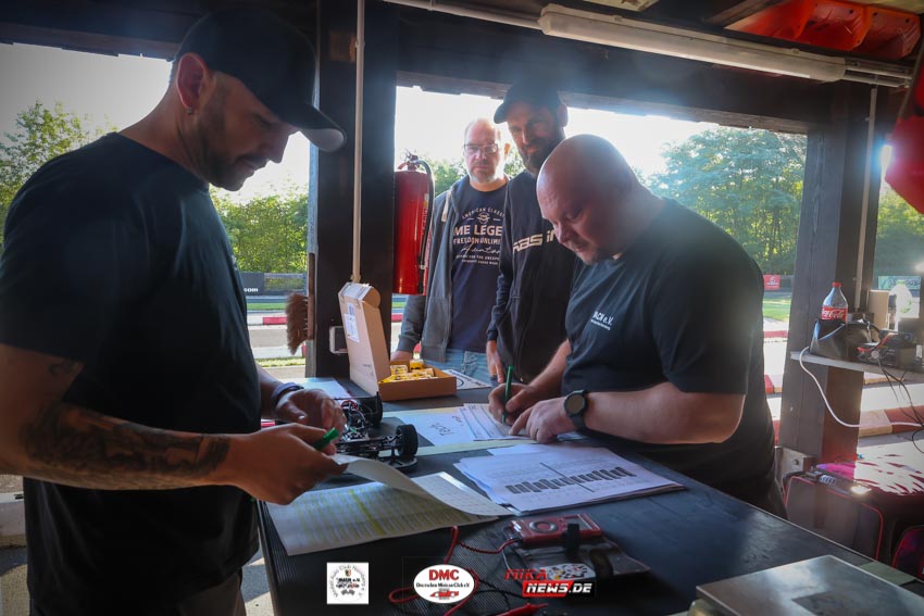 Wichtig ist, dass die Motoren der Klasse EGPRO10SP der Homologationsliste der EFRA entspricht. Es sind nur diese 13,5 Turn Motoren aus der Liste erlaubt. Dazu gibt es u.a. eine Markierung auf der Rotorwelle, welche verbaut sein muss in dem entsprechendem Motor. Dies, wie auch die Akkuspannung vor dem Lauf und dem Gewicht sind wichtige Punkte für die Jungs in der technischen Abnahme.