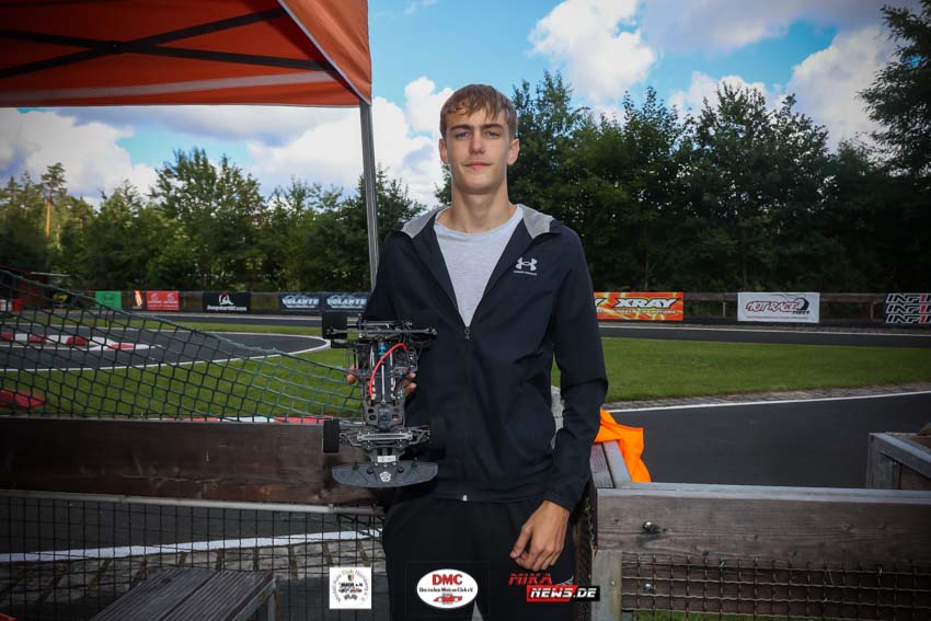Mit vor Ort sind zwei Jugendliche und ein Junior, die in den beiden EGPRO10 Klassen am Start sind. Gestern war Lukas Niederer vor Ort. Erst ist 15 Jahre, hat schon einige Erfolge errungen und kommt vom MC Abendsberg. Ein zweiter Fahrer ist Moritz Stoffels, der wie auch Lukas mit seinem Papa angereits und von ihm vor Ort unterstützt wird. Moritz ist 13 Jahre jung, fährt seit 2,5 Jahren RC Car, ist beim MRC Altstade-Oberhausen im Verein und fährt in der offenen PRO10 Klasse mit. Fahrer Nummer drei ist der 16 jährige Lennox Fischer vom AMC Langenfeld. Er ist mit seinem Papa Christian Fischer am Start. Lennox fährt übrigens einen WRP, Moritz einen Kati und Lukas ist mit einem VIP am Start. Bisher schlagen sich alle drei sehr gut bei dem Event.