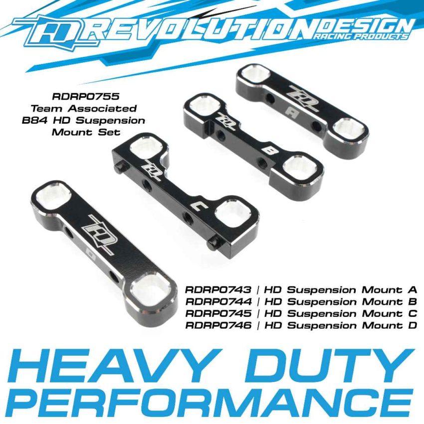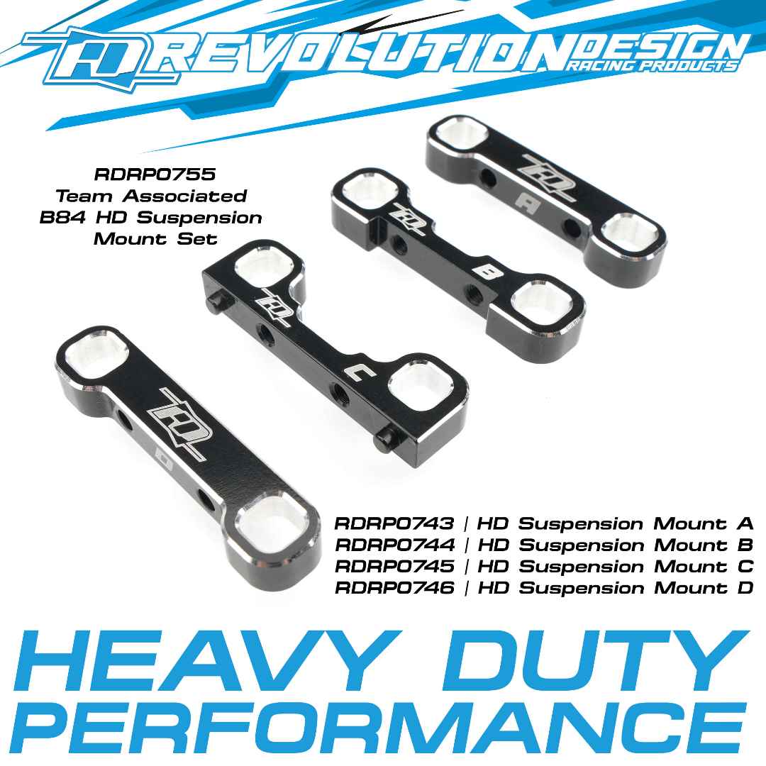 The complete RDRP0755 set includes all four mounts (A, B, C, D), giving you the option to fully upgrade your B84 to heavy-duty suspension mounts. For those who only need specific positions, each mount is also available separately: