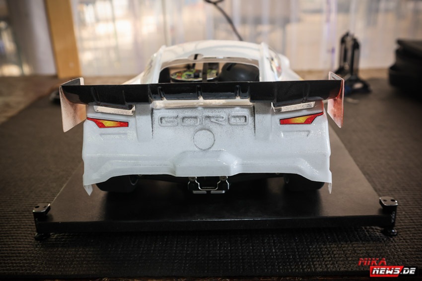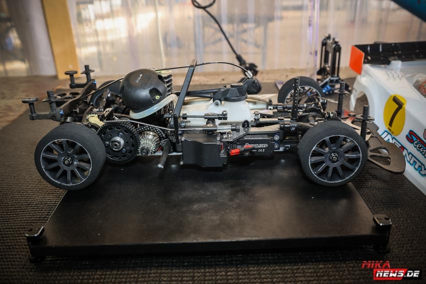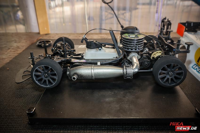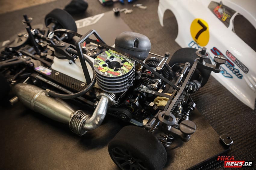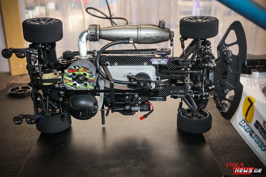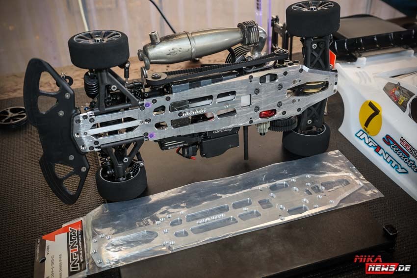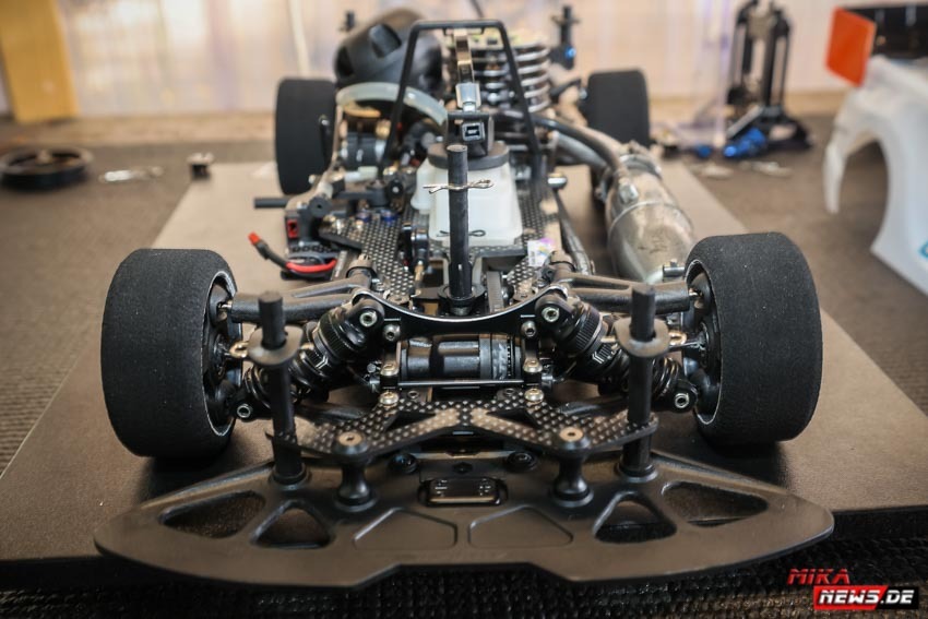 Er hat u.a. an seiner Chassisplatte hinten die Querstrebe entfernt und vorne die „Versteifungsstrebe“ montiert.