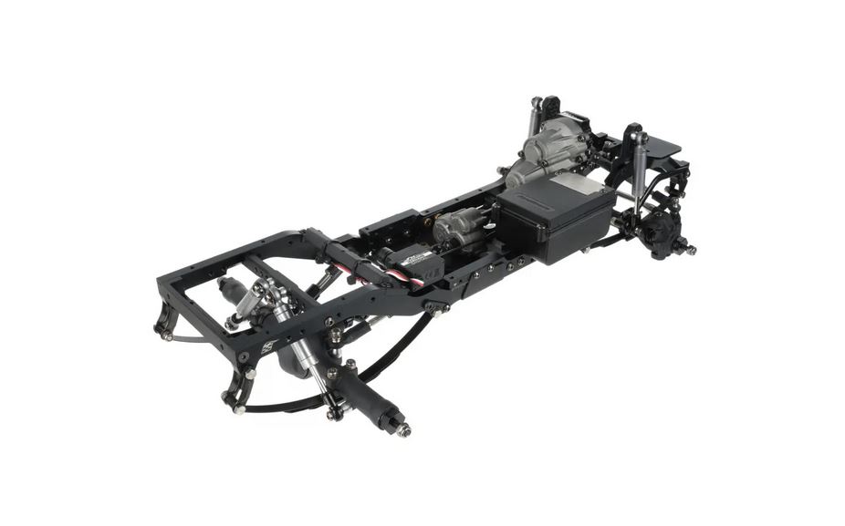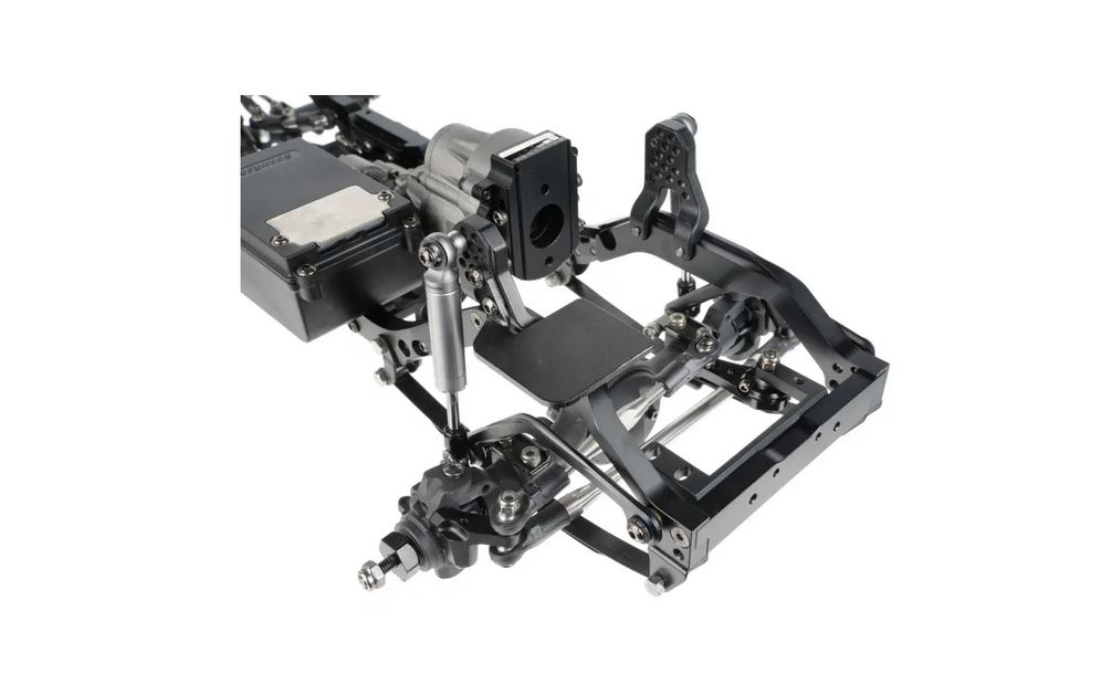 Jeder Blattfedersatz verfügt über eine Hauptblattfeder mit drei abgestuften Blättern für mehr Stabilität und Einstellbarkeit der Federung. Zur Einstellung der Zugstufe können bis zu vier Blätter verwendet werden. Verwindungssteifen an Vorder- und Hinterachse verhindern Achsverwindungen, und realistische Schäkelbolzen sorgen für einen realistischen Maßstab.
