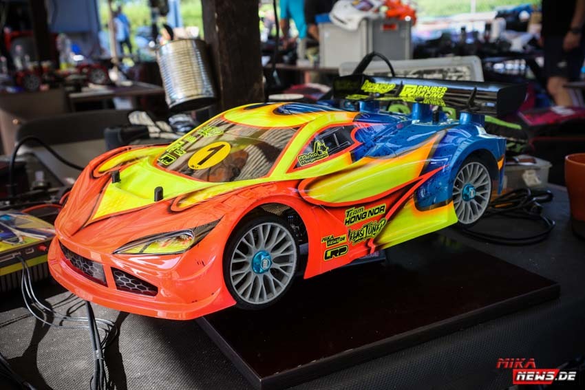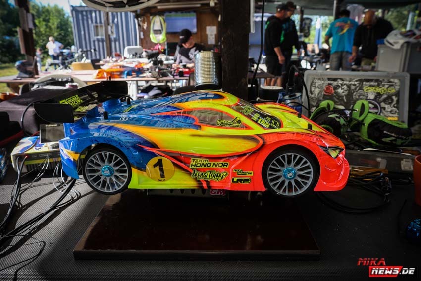 In diesem Jahr gab es gleich mehrere neue deutsche Meister zu küren auf der DM Onroad 1/8GT beim RC Speedracer. Darunter war der Berliner Mirko Morgenstern, der mit diesem Sieg einen weiteren Titel in seiner Sammlung hat. Mirko setzte einen Hong Nor ein. Eines von vielen Fahrzeugen im Fahrerlager. Hier ein Rundgang am Sonntag durch das Fahrerlager mit Blick auf die Technik.