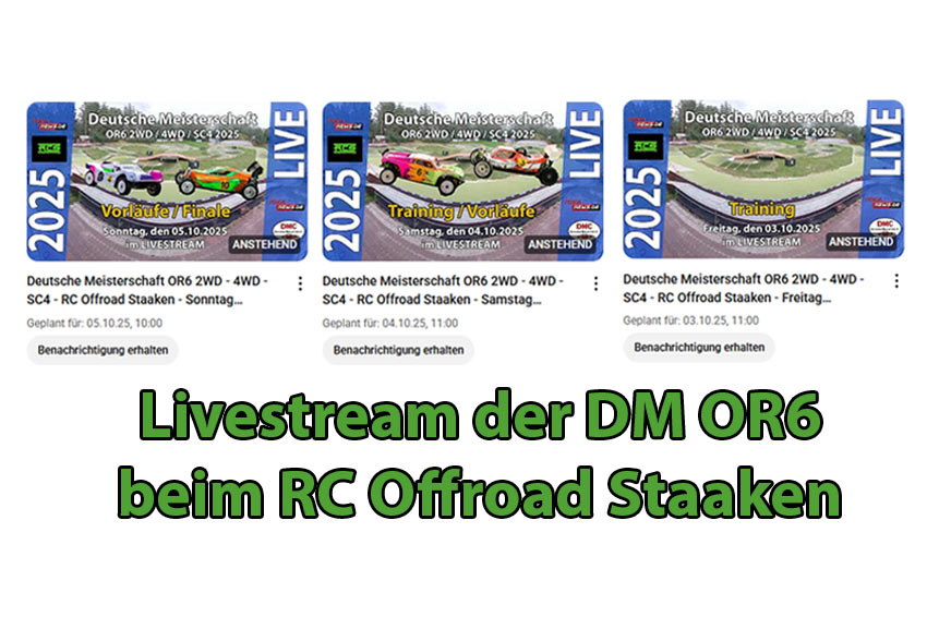 Vom 3.-05.10.2025 dreht sich alles um die Großmodelle im Maßstab 1/6 beim RC Offroad Staaken. Dort findet die deutsche Meisterschaft OR6 in den Klasse OR62WD, 4WD und SC4 statt.