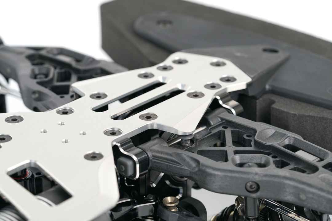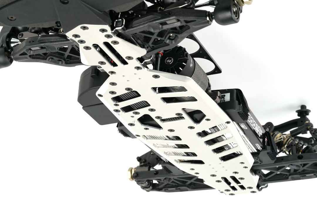 Das neue Fahrzeug wurde mit hochwertigen Aluminium-Bulkheads entwickelt, die eine Änderung der Differenzialpositionen ermöglichen. Ein direkt reagierender Lenkservo-Saver mit einem neuen Ackermann-System ist ebenfalls enthalten.