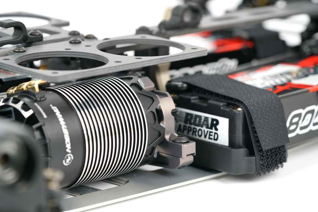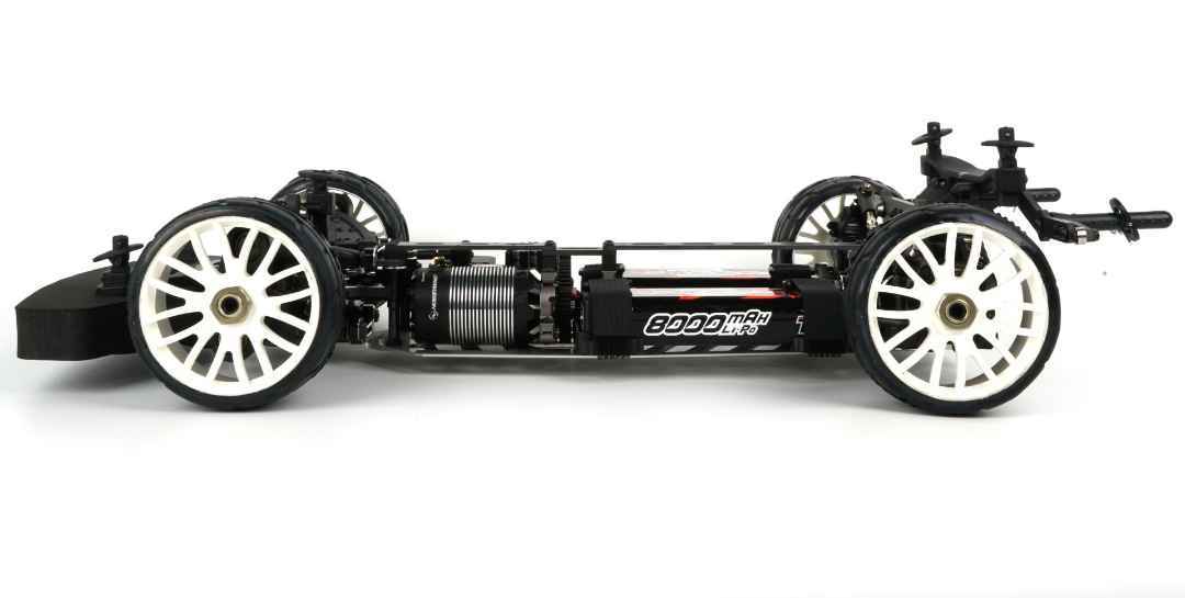 Vom Weltmeistermodell S35-GT2.2e FTE wurde das gewichtsoptimierte Chassis-Design übernommen und ist nun Standard beim S35-GT3.0e FTE. Ein Standard-Layout für 2 Stück 2S-Akkus in Sattelposition sorgt für einen niedrigeren Schwerpunkt. Ebenfalls serienmäßig enthalten sind ein Pro-Composite-Carbon ESC-Halter für 40mm Lüfter sowie 2 Halterungen für 40mm Motorlüfter.