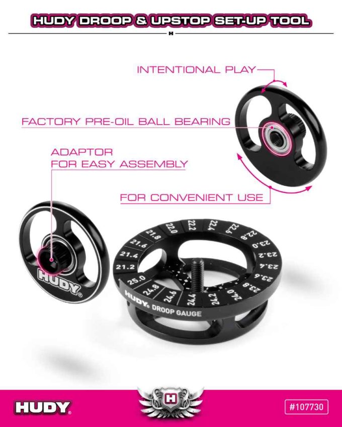 Für RC Fahrer gibt es von HUDY dieses Droop & Upstop Set-Up Tool. Damit könnt ihr euer Fahrzeug gut einstellen.