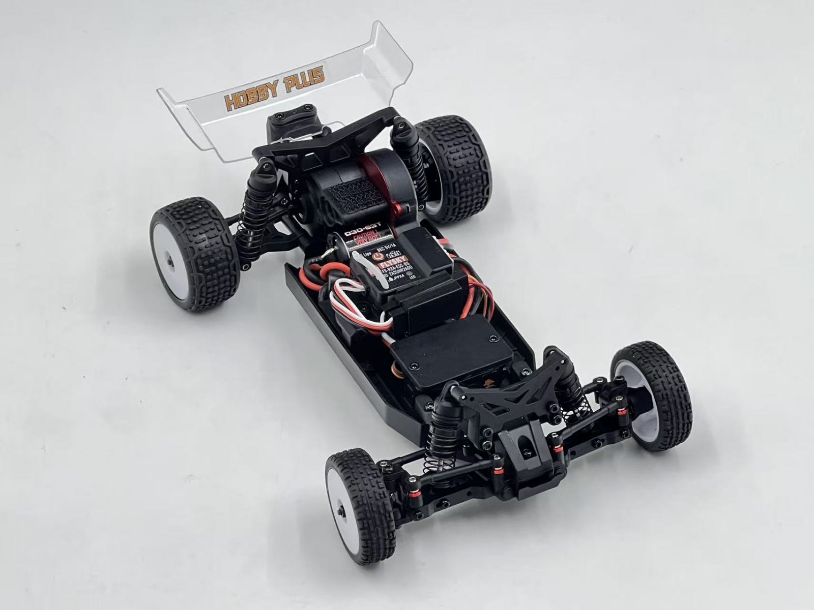 Ein weiterer Aspekt des Speck-B ist seine Fähigkeit, sich in alles zu verwandeln, was Sie ihm zumuten. Der mitgelieferte ESC/Empfänger kann schnell zu einem reinen Empfänger umgebaut werden, um das Modell ohne neuen Empfänger oder Sender in ein Brushless-Modell zu verwandeln. Installieren Sie einfach Ihren eigenen ESC und Motor, und schon kann es losgehen. Dank der mitgelieferten vielseitigen Motorplattenkonstruktion kann das Modell vom mitgelieferten 030-Brushmotor bis hin zu einem 050-Brushmotor oder einem 1626-Brushlessmotor angetrieben werden. Die Kraft wird über einen voll kugelgelagerten Antriebsstrang mit Mod.5 Pitch-Zahnrädern übertragen. Bei all dieser verfügbaren Leistung benötigen Sie sicherlich einige Einstellmöglichkeiten, und genau das haben wir Ihnen geboten. Einstellbare Roll Zentren, einstellbare Gewichtsverteilung mit integrierten optionalen Chassisgewichten oder die Wahl der Position des ESC, voll einstellbare Stoßdämpfer und ein abgedichtetes Getriebedifferenzial ermöglichen es Ihnen, das Fahrzeug ganz nach Ihren Wünschen zu tunen.