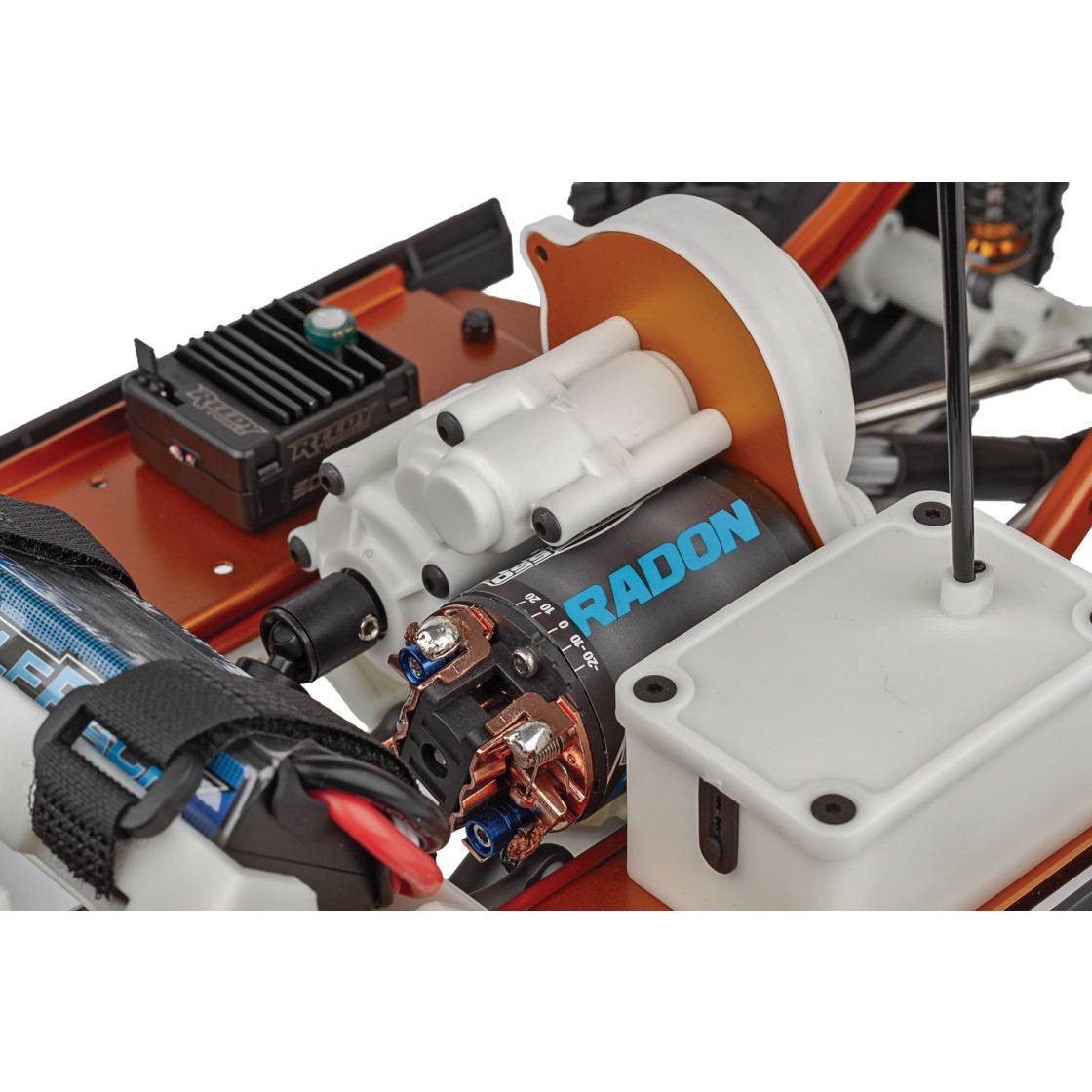Die hinter‑der‑Achse‑Lenkung (Behind‑the‑Axle, BTA) sorgt für deutlich bessere Böschungswinkel und mehr Bodenfreiheit. Hindernisse können so leichter überwunden werden, ohne dass die Lenkung im Weg ist. Die verschraubten Aluminium‑Lenkplatten bieten zusätzliche Stabilität und ermöglichen zukünftige Anpassungen oder Tuning‑Optionen. Damit ist das Fahrzeug nicht nur robust, sondern auch flexibel für individuelle Setups.