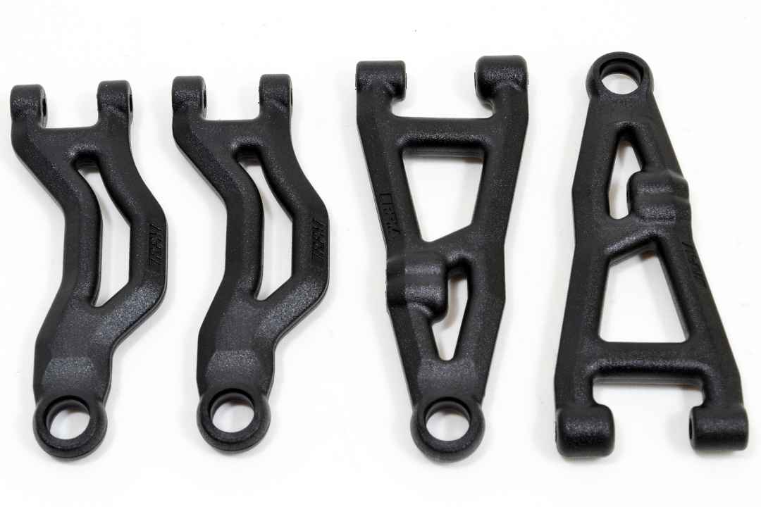 Englische Version: Beef up the Grom version of your ARRMA Typhon, Granite, Quake or Gorgon with RPM Upper and Lower Front A-Arms. Small-scale doesn’t mean small stakes. These mini rockets push serious speed, and the stock components just can’t keep up. That’s where RPM steps in. Our ARRMA Grom Upper and Lower Front A-arms (Set A) are engineered for strength where it counts most. We’ve added muscular upgrades like 30° beveled leading and trailing edges to reduce weight without compromising strength. The A-arm support beams are as much as 32% wider than stock! We’ve also reinforced the shock mounts, and beefed-up inner hinge pin bosses where possible for next-level toughness. On top of our strengthening upgrades, we also added a second shock mount hole on the lower a-arms. Now you can tune your ride to your driving style and track conditions. The second hole sits to the outside of the stock shock mount location. This wider position lowers the ride height and CG, making your Grom a corner-carving monster! All of this is manufactured in the USA using our legendary engineering-grade nylon, ultra-lightweight yet virtually indestructible. Whether you’re bashing hard or flying fast, don’t trust your ride to anything less. Trust RPM. Tech Notes: Replaces the front upper and lower A-arms from stock ARRMA #ARA330809. Does not fit the Mojave Grom. RPM #72292 does not include pivot balls. Must reuse stock ARRMA pivot balls or acquire ARRMA #ARA330805 pivot balls. One package includes two upper front and two lower front A-arms.
