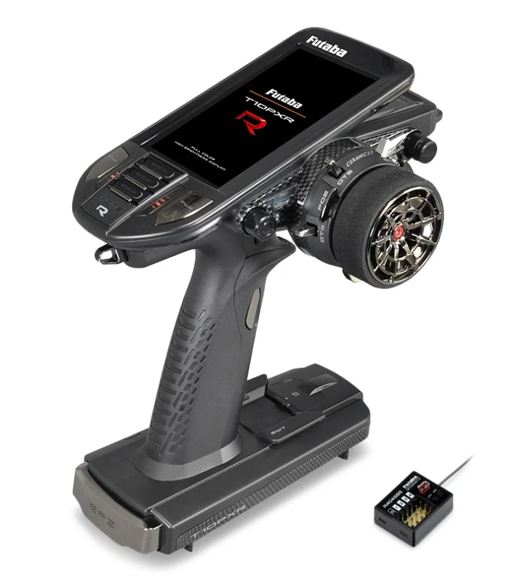 Das neue Flaggschiff bei Futaba ist die T10PXR.Diese besticht durch ein schönes Design in Carbon-Optik mit Touch-Display und einfacher Bedienung. Das Schöne daran ist, dass der Sender individuell an eure „Hand“ einstellbar ist. Es liegen zwei Griffschalen bei, Federn und Bremshebel. Es gibt neugestaltete 3-Positionen-Schalter, D/R- und ATL-Hebel. Der Gashebel ist einstellbar.