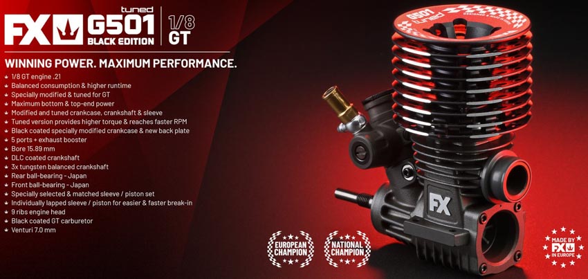 FX Engine präsentierte einen neuen Motor für 1/8 GT. Es handelt sich um den G501 Tuned Black Edition.