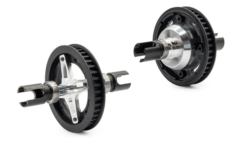 Seht selbst. Das Fahrzeug ist ein Mittelmotor mit unteren Querlenkern aus Kohlefaser und oben einstellbar. Spool vorn und Kegeldifferenzial hinten sind verbaut. Kurze Dämpfer und insgesamt ein flaches Design.