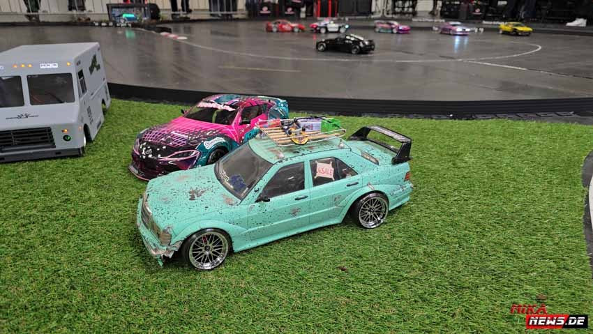 In Halle 5 gab es vom MC Dortmund das Messerennen über die 4 Tage, die Outlaws präsentierten ihre Scaler und Crawler, dann gab es die Drifter aus NRW, die Sherpha Trophy, Microtrucker, Karton- und Plastikmodellbau. Dann war noch Tamiya / Carson, Revell / Carrera vor Ort und neben dem Modellbauzentrum Berlinski noch ein paar Händler dabei. Hoeco aus Österreich war da mit einer Fahrstrecke und einer Neuheit. Der Funco von Traxxas konnte den Besuchern gezeigt werden. Dies war eins der vielen Fahrzeuge welche Hoeco an ihrem Stand präsentierten. Neben der fachlichen Beratung konnten einige Fahrzeuge auf dem Üarcour gefahren werden. Dies wurde reichlich genutzt.