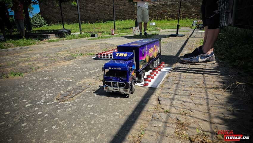Doch zurück zu dem Vereinsgelände in Rotberg. Ich selber brachte meinen bei Kleinanzeigen gekauften Truck mit und bin ihn gefahren. Dabei habe ich einen Trailer anhängen dürfen und habe Tipps / Tricks zum Fahrzeug erhalten. Die Truckmodellbauer aus Berlin sind für alle offen und helfen wo sie können. Schon dies ist ein Grund, hier vorbeizuschauen.