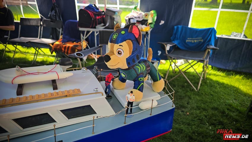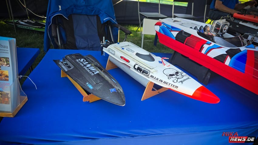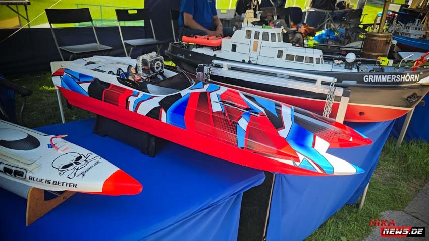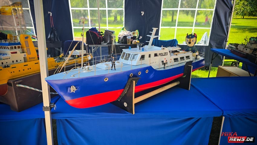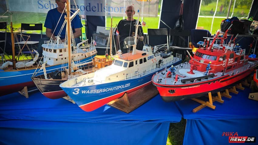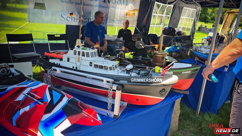 Auf dem Wasser war reger Betrieb, so konnte auch hier den Zuschauern die große Vielfalt der Schiffsmodelle auf dem Wasser in Aktion präsentiert werden. Die Besonderheiten und Funktionsmöglichkeiten der Modelle wurden dem Publikum durch kurze Interviews unserer Moderatoren mit den Modellbootkapitänen näher gebracht.