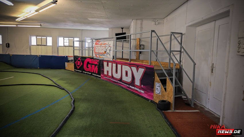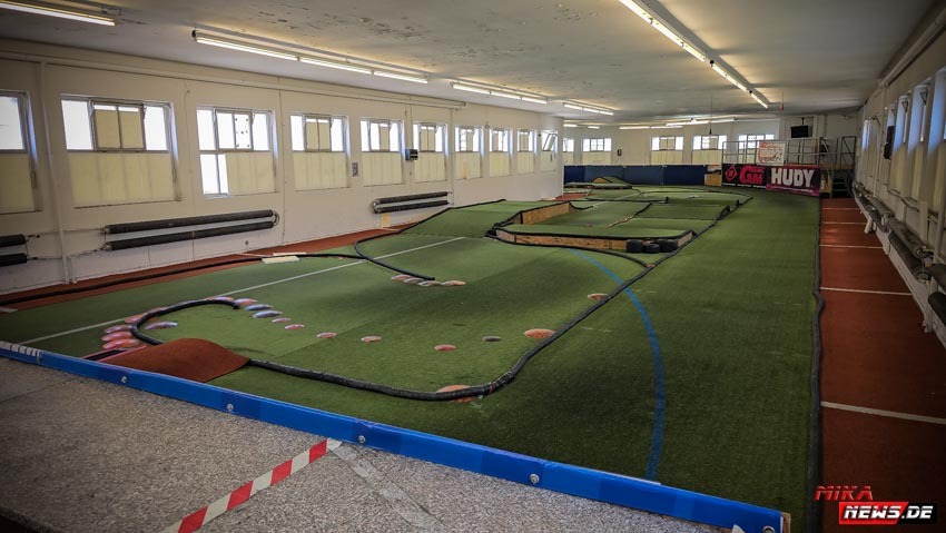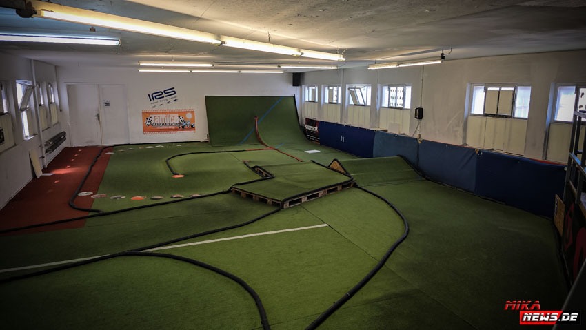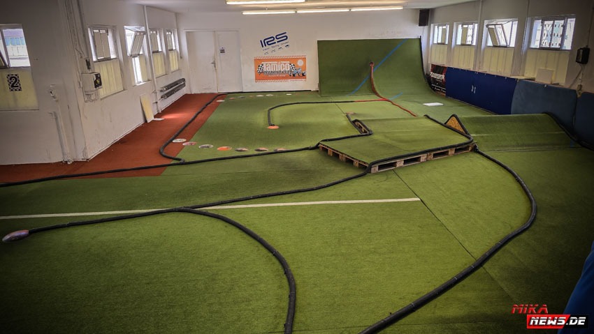 Im oberen Bereich findet ihr zu Beginn ein Fahrerlager mit Tischen, Stühlen und Strom. Daneben gelangt ihr einmal zur Onroadstrecke, dann durch eine Tür zur Mini-Z Strecke und weiter geht es zur Offroadrennstrecke. Wenn ihr das erste Mal vor Ort seid, werdet ihr überrascht sein, was der Verein hier bietet. Gefahren können hier Elektro Off- und Onroader bis zu einem Maßstab 1/10. Eine tolle Anlage die der Verein in Senden für RC Car Fahrer bietet. Als Untergrund liegt Kunstrasen bei den Offroadern und Nadelfilz auf der Onroadstrecke.