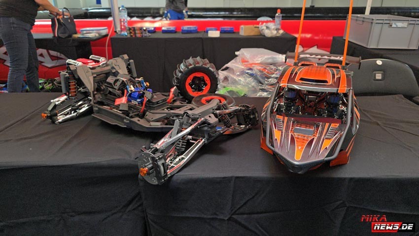 In Halle 5 gab es vom MC Dortmund das Messerennen über die 4 Tage, die Outlaws präsentierten ihre Scaler und Crawler, dann gab es die Drifter aus NRW, die Sherpha Trophy, Microtrucker, Karton- und Plastikmodellbau. Dann war noch Tamiya / Carson, Revell / Carrera vor Ort und neben dem Modellbauzentrum Berlinski noch ein paar Händler dabei. Hoeco aus Österreich war da mit einer Fahrstrecke und einer Neuheit. Der Funco von Traxxas konnte den Besuchern gezeigt werden. Dies war eins der vielen Fahrzeuge welche Hoeco an ihrem Stand präsentierten. Neben der fachlichen Beratung konnten einige Fahrzeuge auf dem Üarcour gefahren werden. Dies wurde reichlich genutzt.