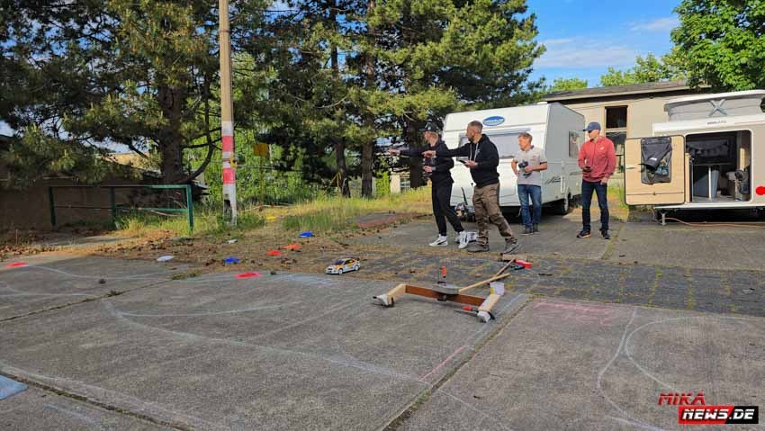 Am letzten Maiwochenende ging es für mich in Richtung Braunschweig und im Anschluss nach Blankenburg, wo die 13.RC Rally Blankenburg ausgetragen wurde. Diese fand am 24./25.05.2025 statt. Diesmal war das Wetter sehr wechselhaft. Am Samstag wurde es im Laufe des Tages sehr windig, aber war trocken. Dies erleichterte den Streckenaufbau und die Vorbereitungen für den Veranstalter. Dieser hatte sich mehrere schöne Wertungsprüfungen ausgedacht, die teils auf Betonplatten, Rasen und Schotter ausgetragen wurden. Dabei war die erste von den drei Wertungsprüfung am Längsten gewesen. Nachdem am Samstag ab 14 Uhr angereist werden konnte, füllte sich das Fahrerlager mit den ersten Teilnehmern, die die WP`s in Augenschein nehmen konnten. Rainer war da noch dabei mit dem Rasenmäher eine Streckenführung in die Wiese zu mähen. Die Strecken wurden mit Deckeln und Absperrband abgesperrt. Auf dem festen Untergrund war die Streckenführung aufgezeichnet.