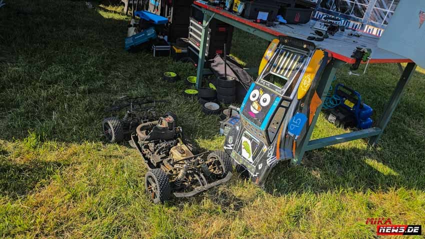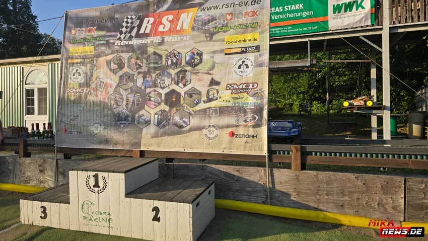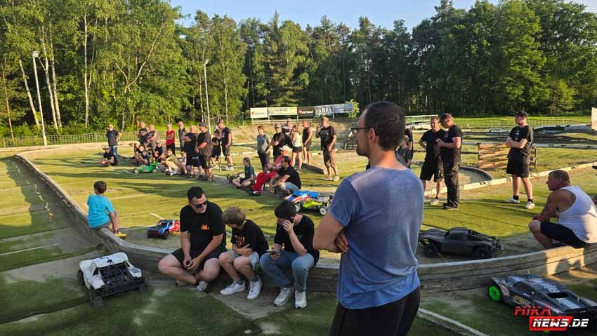 Das Cobra Racing Großgrabe lud am 14.06.2025 zum letzten Saisonlauf vor der Sommerpause auf ihrer permanenten Rennstrecke in einem Waldgebiet neben Grossgrabe ein. Bei super sommerlichem und heißem Wetter fand hier Lauf Nummer 4 der Rennserie Nord statt. In dieser Rennserie geht es um die Großmodelle im Maßstab 1/6 Offroad und die Kids-Klasse mit 1/8 Offroadern. Nachdem zuletzt der Saisonlauf beim AMC Meißen mit drei spektakulären und teils sehr spannenden Finals zu Ende ging, war man gespannt, wer hier auf einer noch anspruchsvolleren Strecke am besten klar kommen würde. Durch die Begrenzungen aus Holz, umgelegten Straßenpfosten und Kunststoffschlauch war ein Abkürzen kaum möglich. Dann kamen die engen Kurven hinzu, die man nicht abkürzen durfte, was ansonsten zu viel Zeitverlust führte. Auf der Strecke gab es mit der Brückenüberfahrt und der anschließenden Steilkurve zwei Highlights, wobei die Steilkurve unten innen durchfahren wurde. Diese Linie war einfach schneller um die 90 Grad Linkskurve zur Gerade am Optimalsten treffen zu können. Für die Fahrer gab es diesmal wenig Zeit zum entspannen. Hinzu kamen die heißen Temperaturen, die für Mensch und Material eine Herausforderung waren.