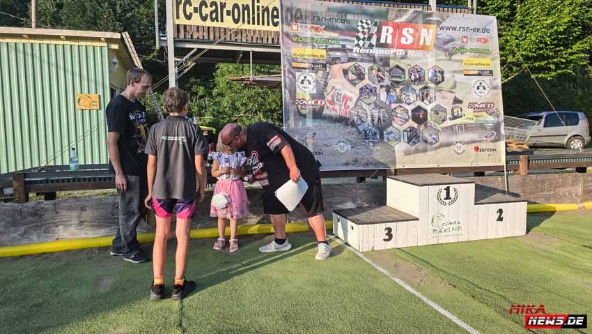 Den Beginn der Finals machten die Kids mit ihrem Lauf. Hier hatte die RSN eine eigene Klasse geschaffen, um dem Nachwuchs einmal den Einstieg zu ermöglichen und das auf der jeweiligen Strecke. Somit hatten sich 1/8 Buggys als optimal herausgestellt. Auf der Strecke konnte sich Niklas Wündrich im Finale gegen Max Albrecht und Ben Jenke durchsetzen.Stark war in Short Course bei den Erwachsenen. Bei den Kids noch Vierter, gelang ihm Platz 7 bei den „Großen“. Wahnsinn, wie auch Nick Merl, der mit seinen 14 Jahren wieder aufs Podiumin 4WD fuhr. Die Jugend bzw. die Junioren werden immer besser. Da muss sich der ein und andere Fahrer „warm“ anziehen und Papa wird wohl bald mehr schrauben als fahren.