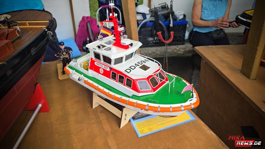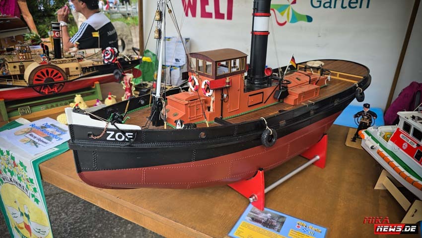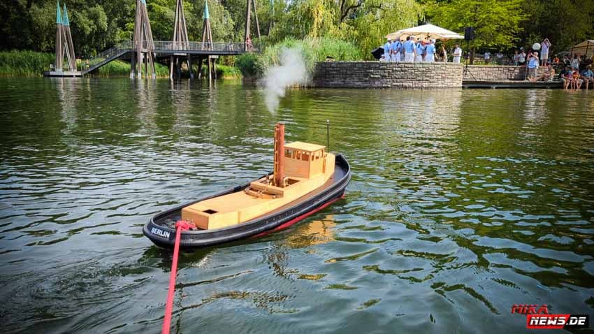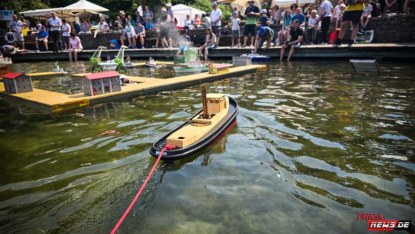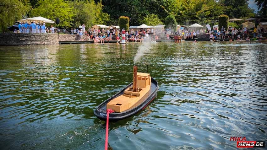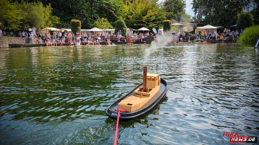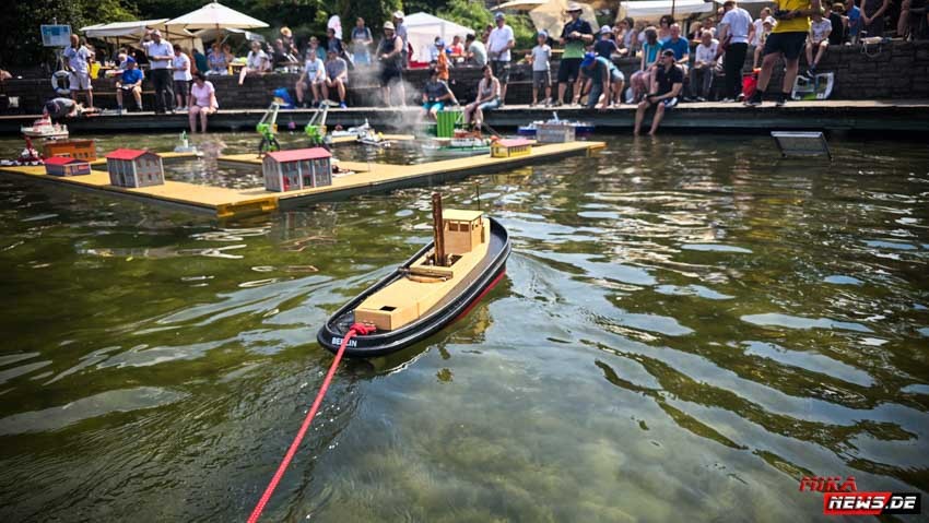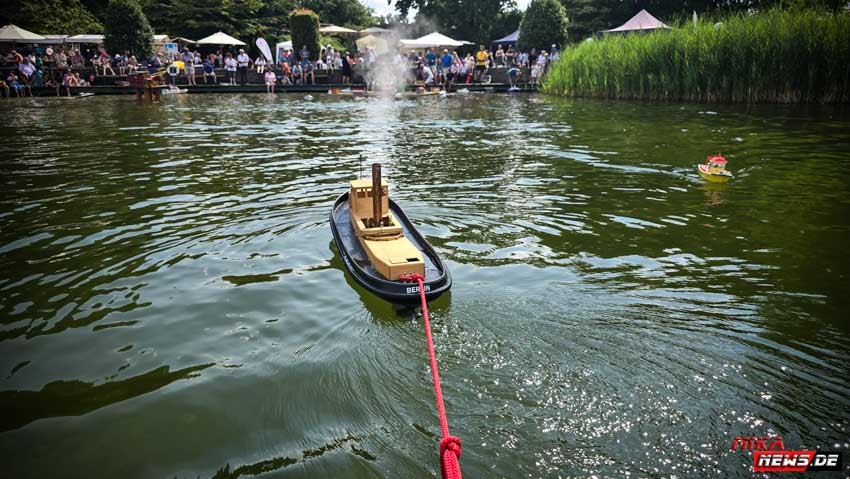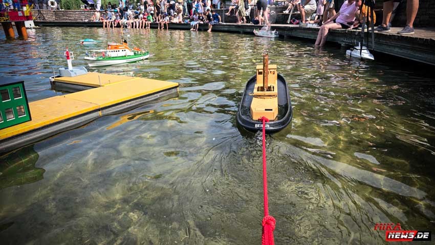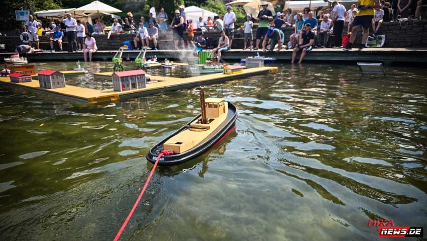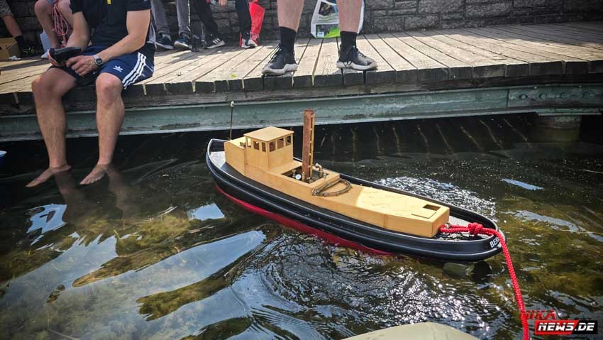 Auf dem Wasser war reger Betrieb, so konnte auch hier den Zuschauern die große Vielfalt der Schiffsmodelle auf dem Wasser in Aktion präsentiert werden. Die Besonderheiten und Funktionsmöglichkeiten der Modelle wurden dem Publikum durch kurze Interviews unserer Moderatoren mit den Modellbootkapitänen näher gebracht.