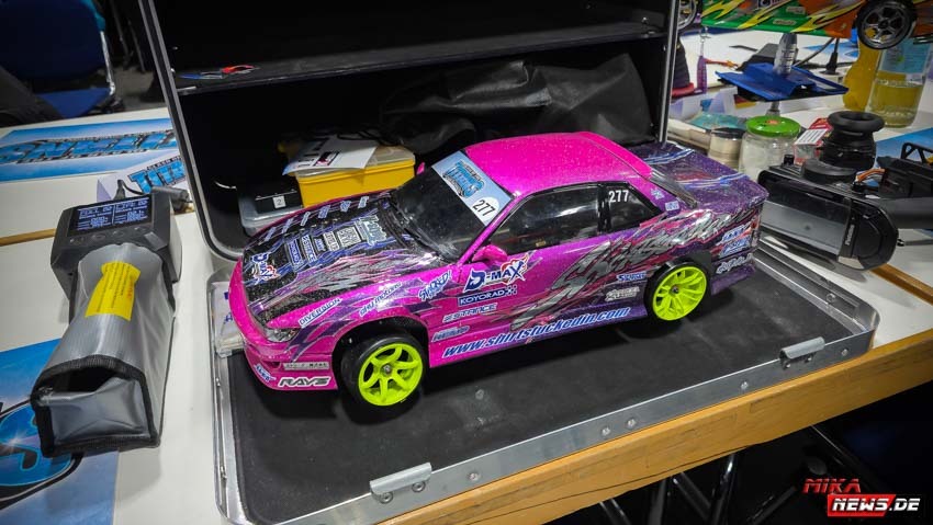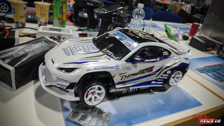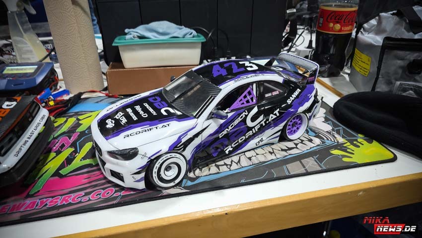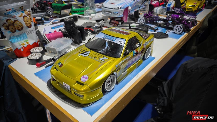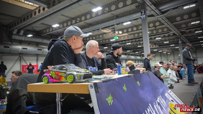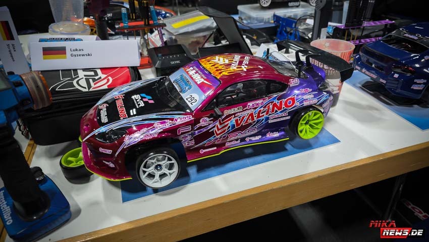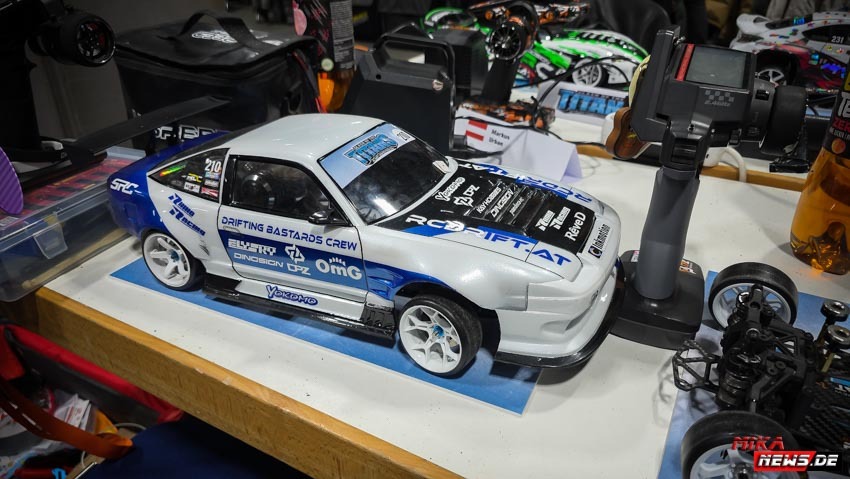 Die meisten Teilnehmer reisten am Donnerstag bzw. Freitag früh an, um den Freitag als Trainingstag nutzen zu können. Wie im Vorjahr gab es eine Competition- und eine Trainingsstrecke, damit alle Teilnehmer nach herzenslust fahren konnten. Die Competitionstrecke war für die offiziellen Trainingsläufe, die Qualifikation am Samstag und die Battles am Sonntag reserviert. Dagegen war der Trainingsstrecke jederzeit befahrbar, was durchweg genutzt wurde. Der Vorteil war, dass der Untergrund gleich war. Nur das Layout war anders, um allen die gleiche Chance auf der Competitionstrecke zu geben. Der Samstag war für alle Teilnehmer besonders interessant. Die Frage war, wer es in die Top 64 schaffen würde? So manch ein Fahrer konnte überraschend den Sprung in die Top 64 schaffen. Andere haderten mit ihrem Lauf und so blieb ihnen am Sonntag nur die Rolle als Zuschauer. Das ist RC Drift. Ein kleiner Fehler kann die so wichtigen Punkte kosten, die am Ende fehlten.