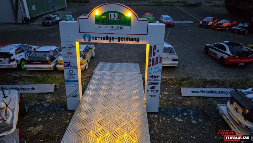 Am letzten Maiwochenende ging es für mich in Richtung Braunschweig und im Anschluss nach Blankenburg, wo die 13.RC Rally Blankenburg ausgetragen wurde. Diese fand am 24./25.05.2025 statt. Diesmal war das Wetter sehr wechselhaft. Am Samstag wurde es im Laufe des Tages sehr windig, aber war trocken. Dies erleichterte den Streckenaufbau und die Vorbereitungen für den Veranstalter. Dieser hatte sich mehrere schöne Wertungsprüfungen ausgedacht, die teils auf Betonplatten, Rasen und Schotter ausgetragen wurden. Dabei war die erste von den drei Wertungsprüfung am Längsten gewesen. Nachdem am Samstag ab 14 Uhr angereist werden konnte, füllte sich das Fahrerlager mit den ersten Teilnehmern, die die WP`s in Augenschein nehmen konnten. Rainer war da noch dabei mit dem Rasenmäher eine Streckenführung in die Wiese zu mähen. Die Strecken wurden mit Deckeln und Absperrband abgesperrt. Auf dem festen Untergrund war die Streckenführung aufgezeichnet.