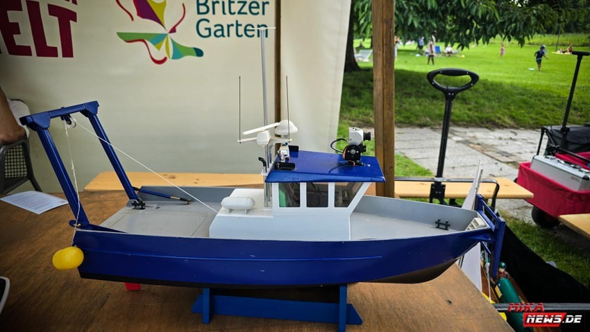 Am letzten Wochenende fand im Britzer Garten das 14.Große Schiffsmodellbautreffen statt. Dazu lud der Sail & Road am Sonntag, den 20.07.2025 ein. Bereits im Vorfeld musste viel organisiert werden, damit die eingeladenen Gäste und Vereine ihre Stände einrichten konnten. Dies traf auch den veranstaltenden Verein Sail & Road, welche hier im Britzer Garten eine Modellboothafen hat. Der Tag begann mit dem Aufbau der Markstände, Tische, Pavillons und Tontechnik. Bis zur Parköffnung war dann alles für die zahlreichen Besucher bereit, die sich bei den Ausstellern rund um das Thema Schiffsmodellbau, aber auch Automodellbau informieren konnten. Zahlreiche Schiffe waren auf dem See zu bewundern und ein Chor sorgte für Musik regelmäßig. Interessant war die Geschichte der Rettung der Arabella, welche von Frank vorgeführt wurde.